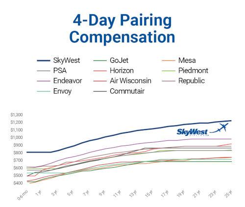 SkyWest flight attendants receive the highest overall compensation among regional carriers. Here's an example of how each regional carrier would pay for the same four-day trip based on each current contract.